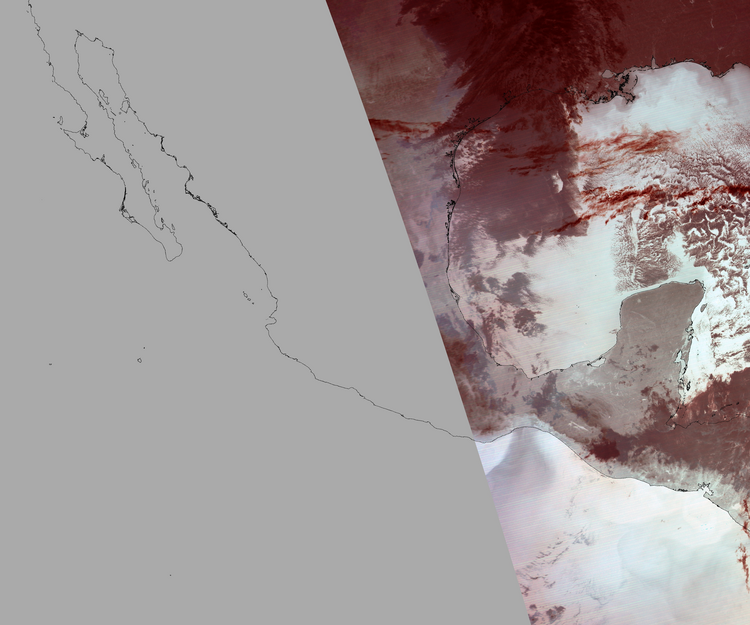 Nubosidad en el terreno:15% Nubosidad sobre México:0% Datos nulos en la escena:57% Datos nulos sobre México:73% |