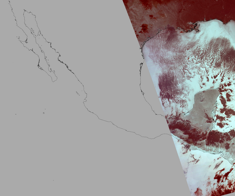 Nubosidad sobre el terreno:1% Nubosidad sobre México:0% Datos nulos en la escena:67% Datos nulos sobre México:87% |