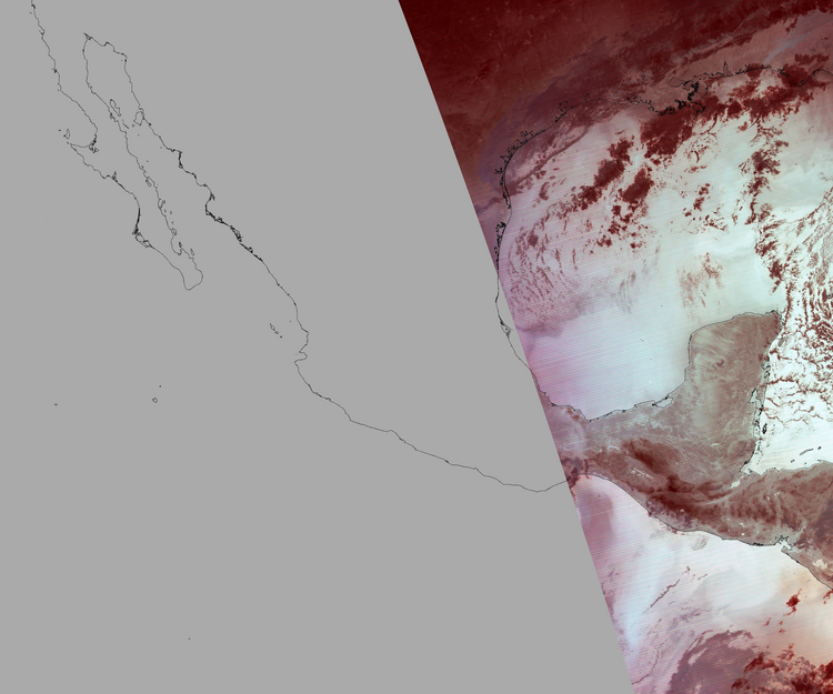 Nubosidad sobre el terreno:0% Nubosidad sobre México:0% Datos nulos en la escena:62% Datos nulos sobre México:84% |