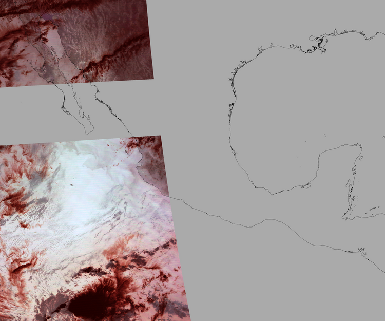 Nubosidad sobre el terreno:12% Nubosidad sobre México:9% Datos nulos en la escena:56% Datos nulos sobre México:59% |