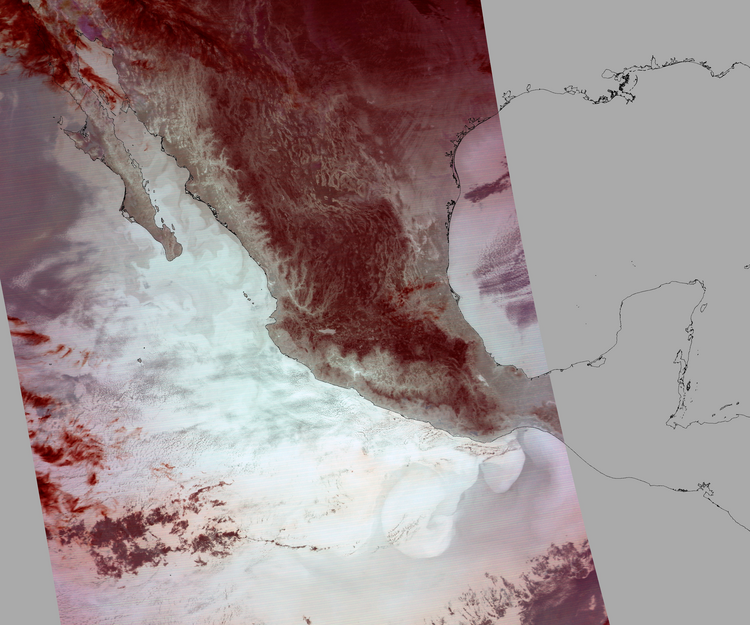 Nubosidad en el terreno:2% Nubosidad sobre México:0% Datos nulos en la escena:30% Datos nulos sobre México:11% |