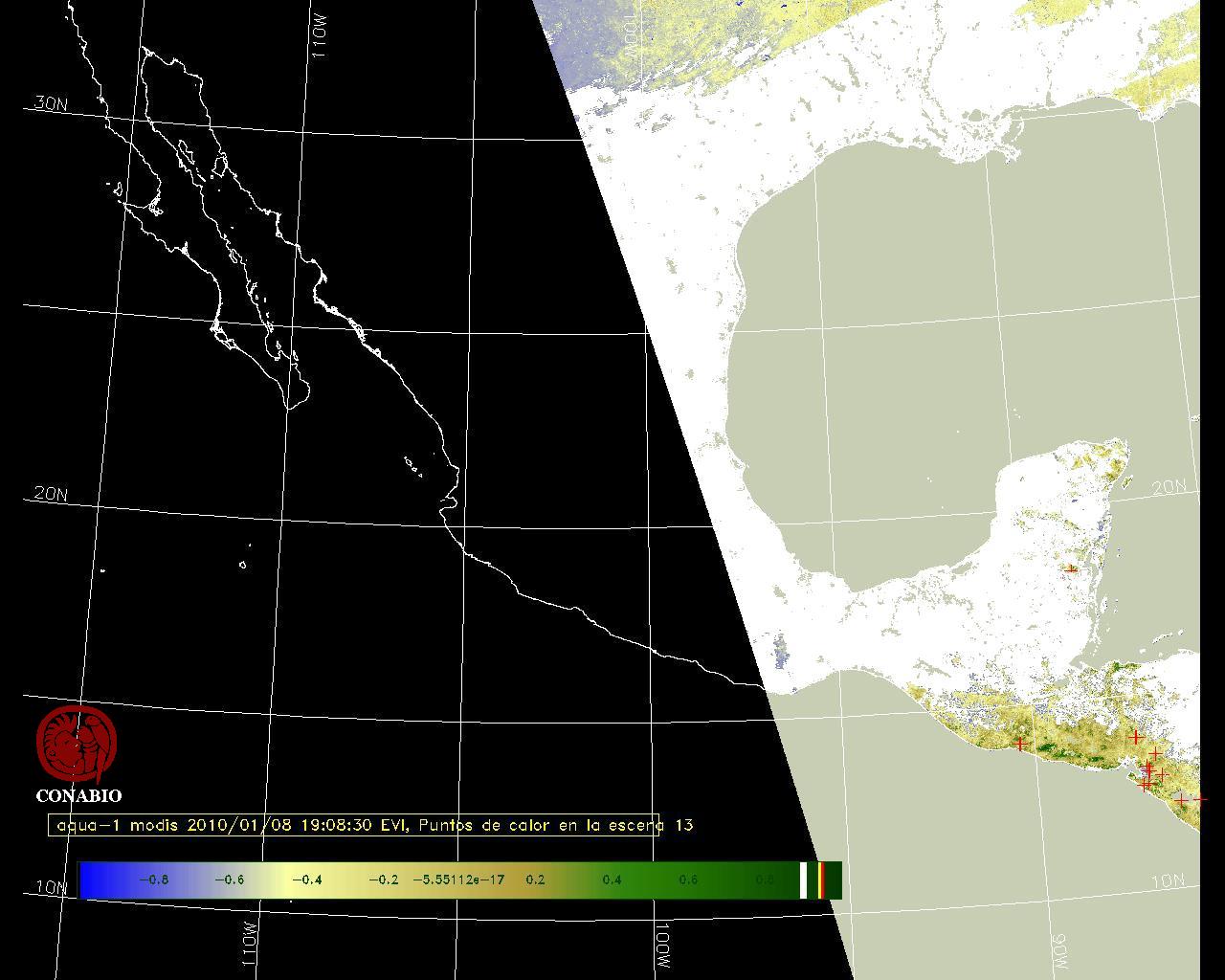 Se considera como punto de calor al elemento espacial mínimo de la imagen (pixel) que reporta una temperatura elevada. Para las imágenes diurnas la temperatura mínima considera es de 42 C y para las imágenes nocturnas es de 25 C. |