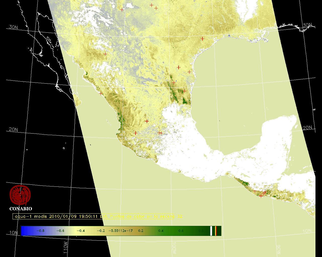 Los valores del índice van de -1 a 1, entre más cercano al valor 1 la vegetación presenta mayor vigor. Los índices de vegetación son utilizados para conocer el comportamiento de la vegetación tanto espacial como temporal. |