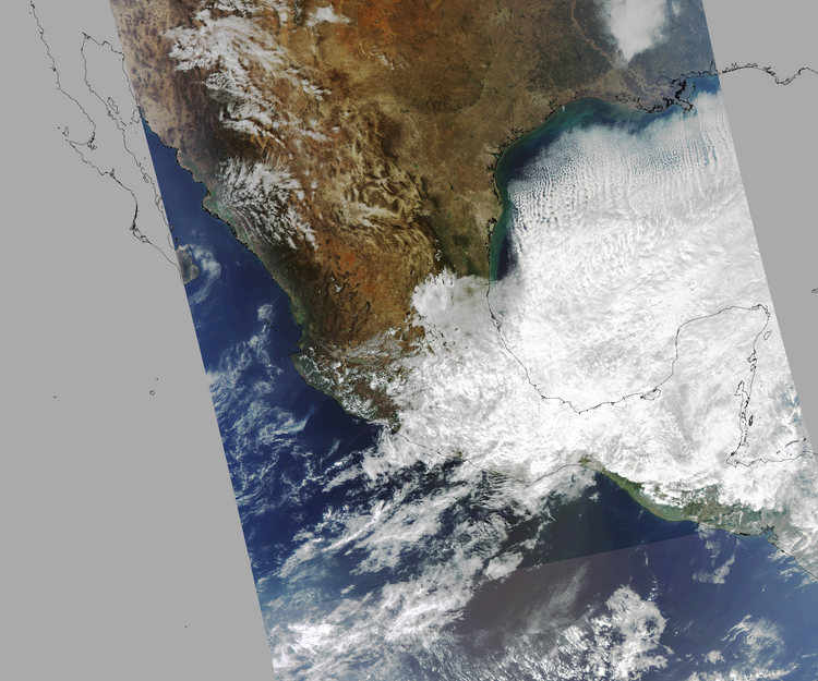 Nubosidad en el terreno:30% Nubosidad sobre México:36% Datos nulos en la escena:29% Datos nulos sobre México:7% |