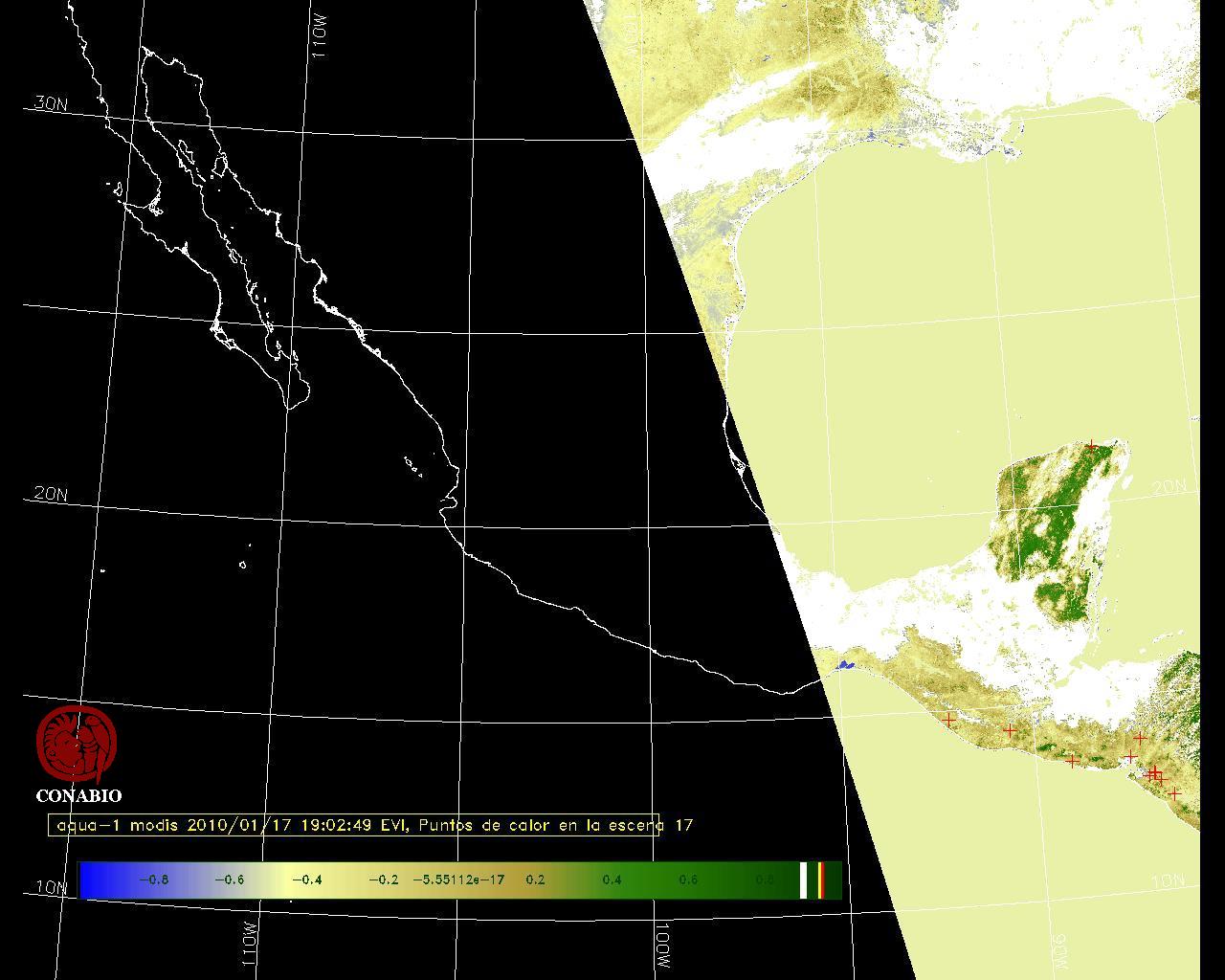 Se considera como punto de calor al elemento espacial mínimo de la imagen (pixel) que reporta una temperatura elevada. Para las imágenes diurnas la temperatura mínima considera es de 42 C y para las imágenes nocturnas es de 25 C. |