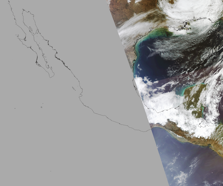 Nubosidad en el terreno:46% Nubosidad sobre México:44% Datos nulos en la escena:62% Datos nulos sobre México:83% |