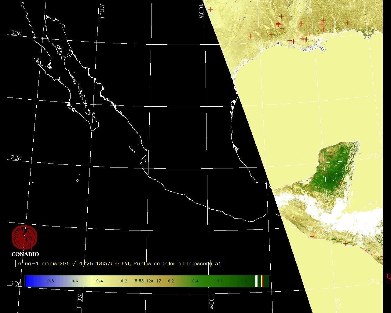 Se considera como punto de calor al elemento espacial mínimo de la imagen (pixel) que reporta una temperatura elevada. Para las imágenes diurnas la temperatura mínima considera es de 42 C y para las imágenes nocturnas es de 25 C. |