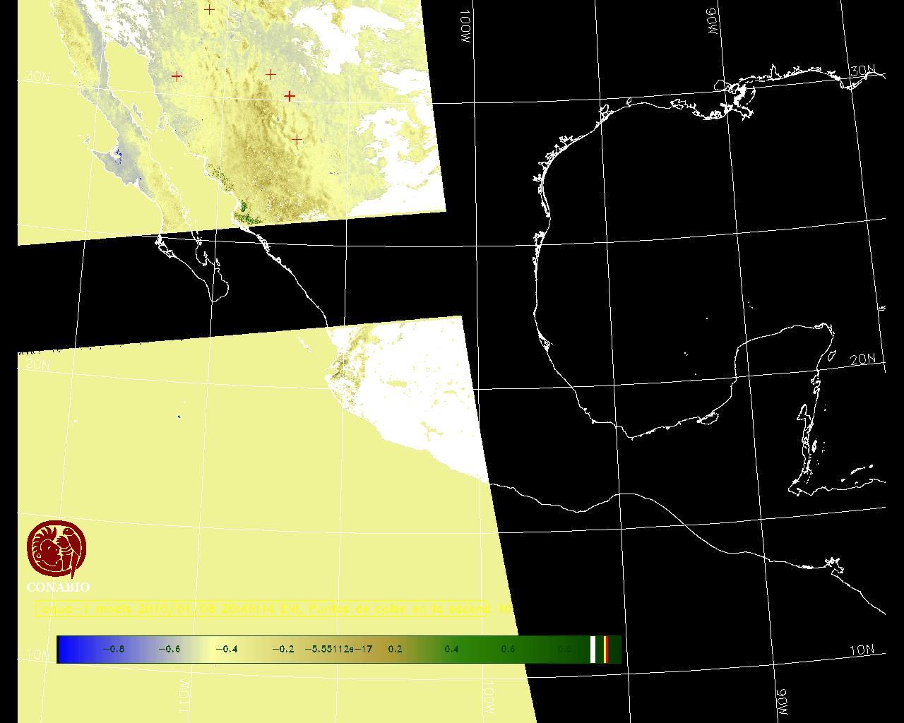 Se considera como punto de calor al elemento espacial mínimo de la imagen (pixel) que reporta una temperatura elevada. Para las imágenes diurnas la temperatura mínima considera es de 42 C y para las imágenes nocturnas es de 25 C. |