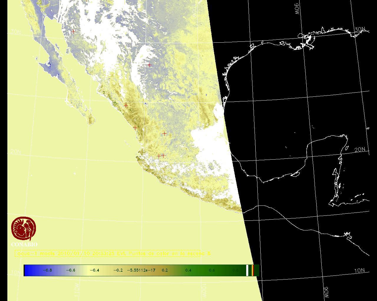Se considera como punto de calor al elemento espacial mínimo de la imagen (pixel) que reporta una temperatura elevada. Para las imágenes diurnas la temperatura mínima considera es de 42 C y para las imágenes nocturnas es de 25 C. |