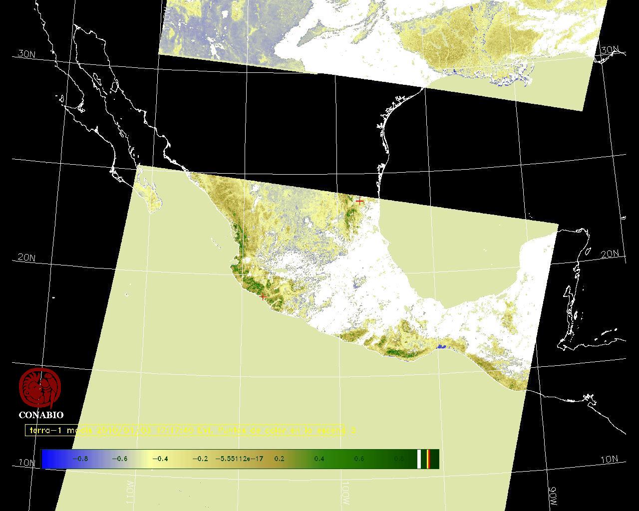 Los valores del índice van de -1 a 1, entre más cercano al valor 1 la vegetación presenta mayor vigor. Los índices de vegetación son utilizados para conocer el comportamiento de la vegetación tanto espacial como temporal. |