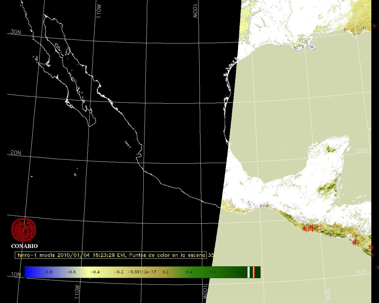 Se considera como punto de calor al elemento espacial mínimo de la imagen (pixel) que reporta una temperatura elevada. Para las imágenes diurnas la temperatura mínima considera es de 42 C y para las imágenes nocturnas es de 25 C. |