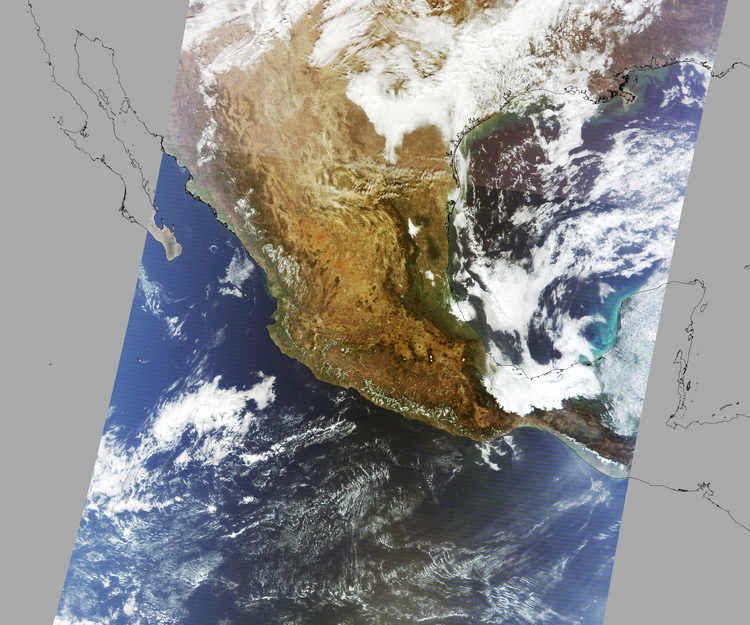 Nubosidad en el terreno:22% Nubosidad sobre México:7% Datos nulos en la escena:28% Datos nulos sobre México:15% |