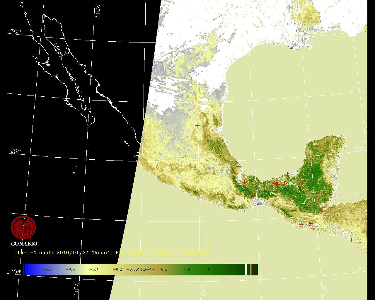 Se considera como punto de calor al elemento espacial mínimo de la imagen (pixel) que reporta una temperatura elevada. Para las imágenes diurnas la temperatura mínima considera es de 42 C y para las imágenes nocturnas es de 25 C. |