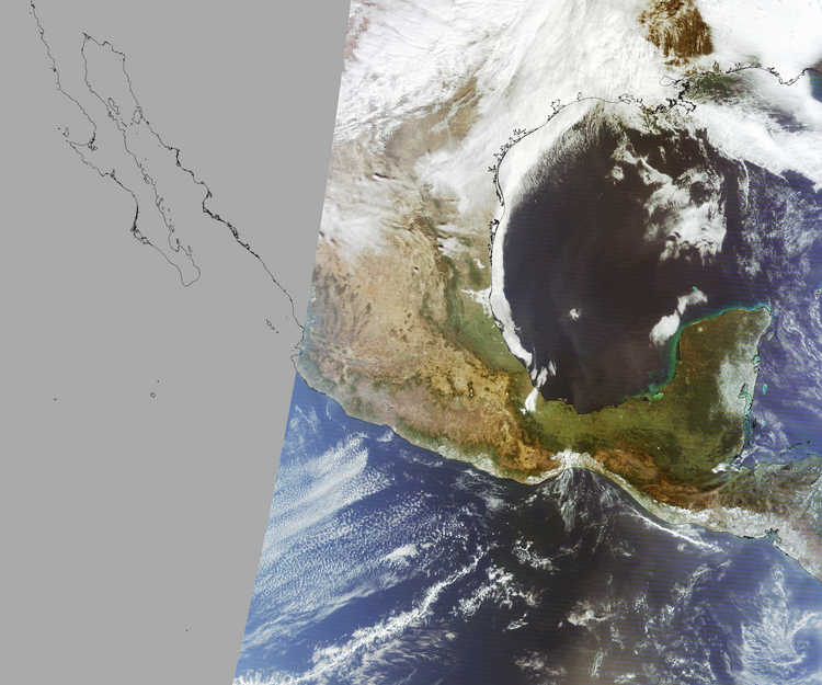 Nubosidad en el terreno:34% Nubosidad sobre México:9% Datos nulos en la escena:36% Datos nulos sobre México:35% |