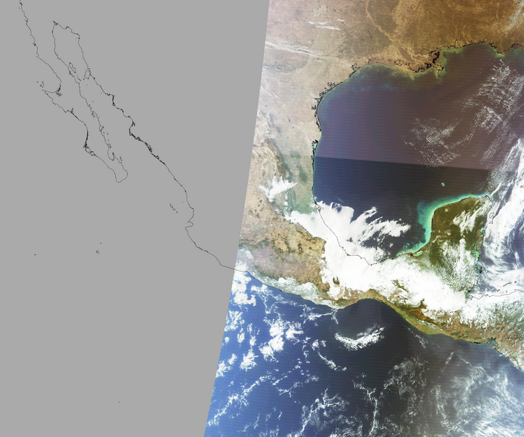 Nubosidad en el terreno:14% Nubosidad sobre México:21% Datos nulos en la escena:45% Datos nulos sobre México:54% |