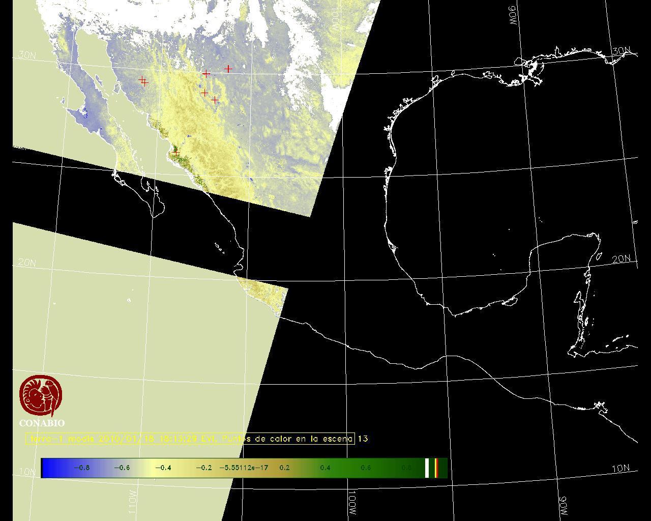 Se considera como punto de calor al elemento espacial mínimo de la imagen (pixel) que reporta una temperatura elevada. Para las imágenes diurnas la temperatura mínima considera es de 42 C y para las imágenes nocturnas es de 25 C. |