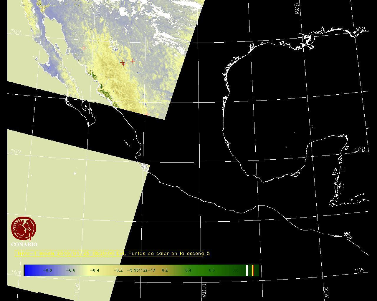 Se considera como punto de calor al elemento espacial mínimo de la imagen (pixel) que reporta una temperatura elevada. Para las imágenes diurnas la temperatura mínima considera es de 42 C y para las imágenes nocturnas es de 25 C. |
