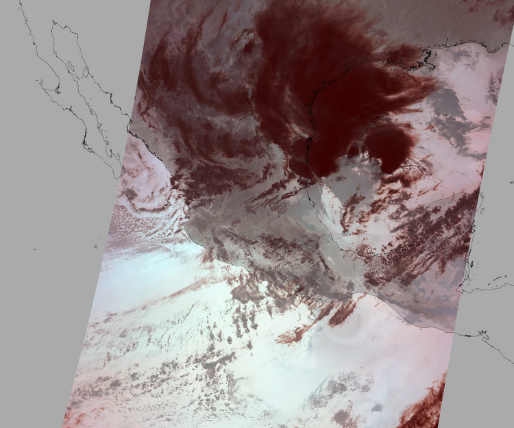 Nubosidad en el terreno:43% Nubosidad sobre México:41% Datos nulos en la escena:28% Datos nulos sobre México:16% |