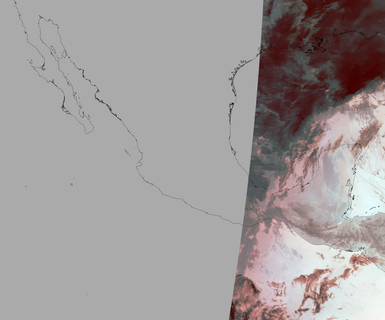 Nubosidad en el terreno:39% Nubosidad sobre México:7% Datos nulos en la escena:64% Datos nulos sobre México:83% |