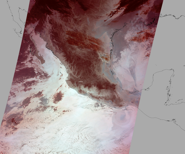 Nubosidad sobre el terreno:12% Nubosidad sobre México:3% Datos nulos en la escena:28% Datos nulos sobre México:15% |