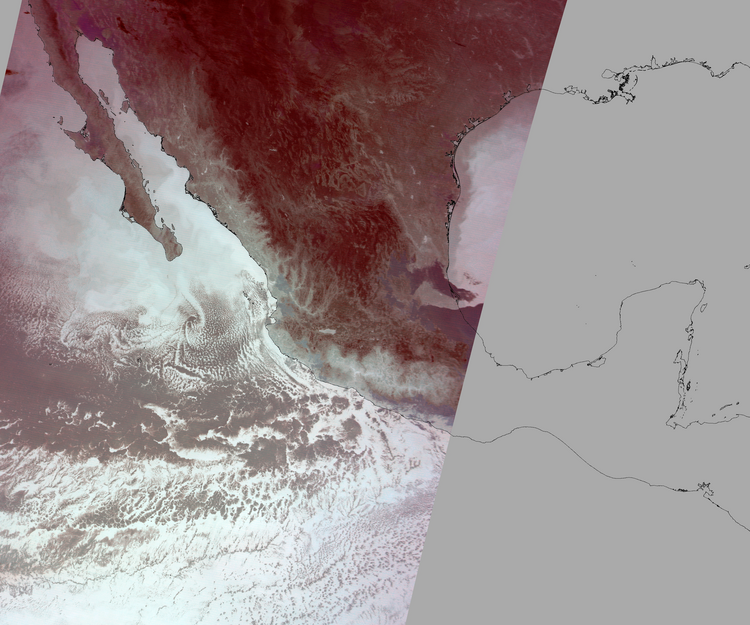 Nubosidad sobre el terreno:3% Nubosidad sobre México:1% Datos nulos en la escena:35% Datos nulos sobre México:18% |