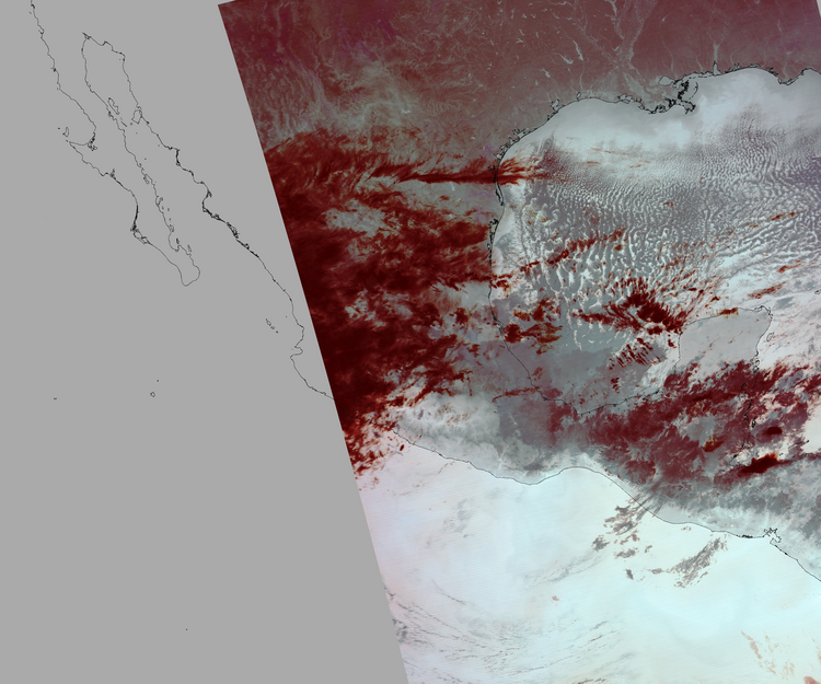 Nubosidad en el terreno:18% Nubosidad sobre México:34% Datos nulos en la escena:38% Datos nulos sobre México:25% |