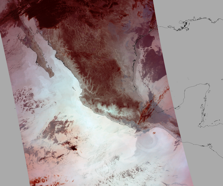 Nubosidad en el terreno:13% Nubosidad sobre México:6% Datos nulos en la escena:28% Datos nulos sobre México:8% |