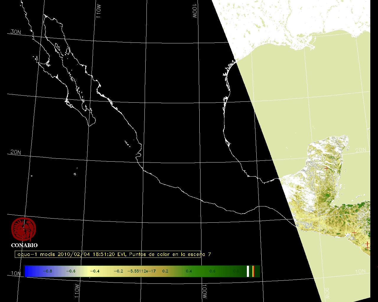 Se considera como punto de calor al elemento espacial mínimo de la imagen (pixel) que reporta una temperatura elevada. Para las imágenes diurnas la temperatura mínima considera es de 42 C y para las imágenes nocturnas es de 25 C. |