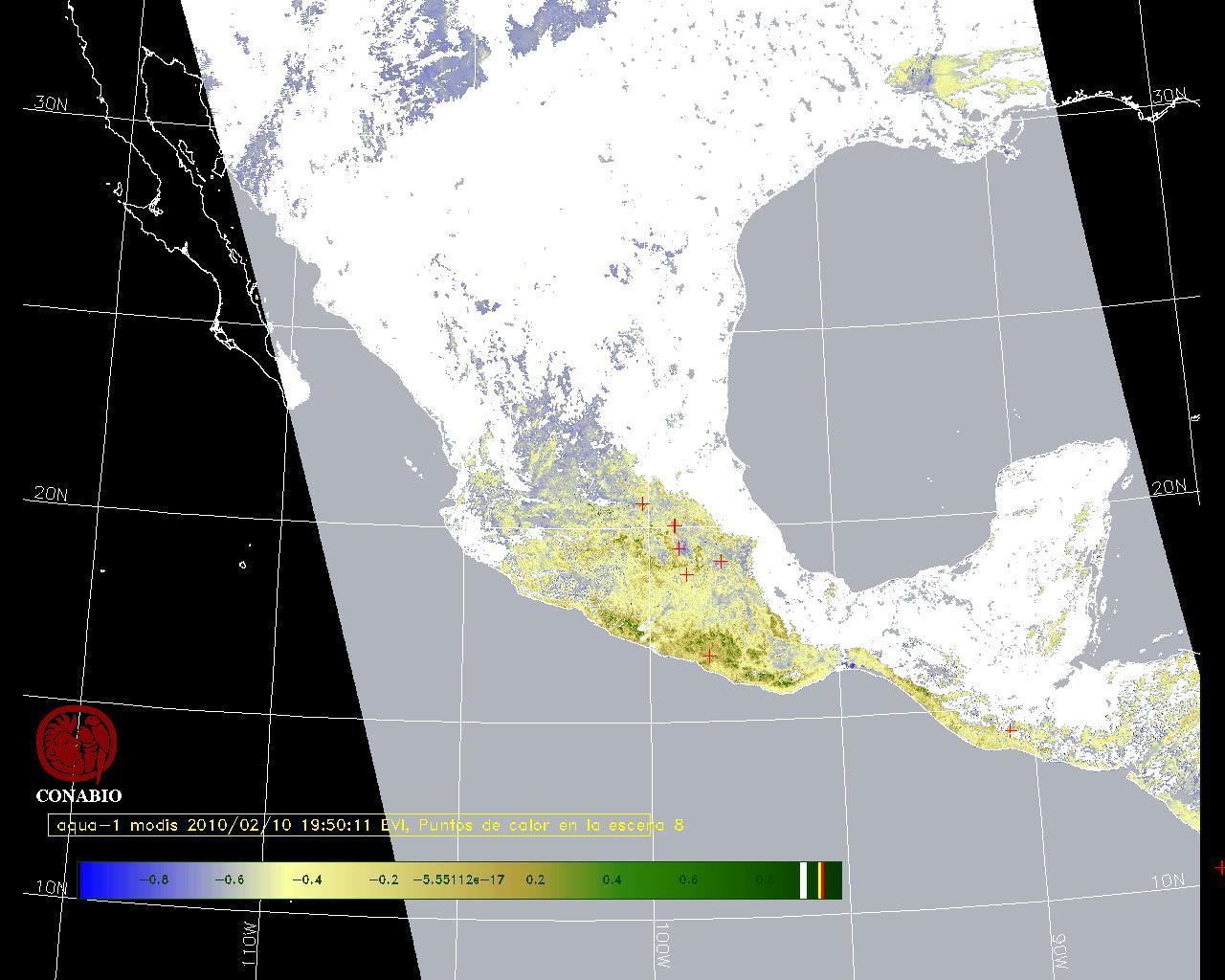 Se considera como punto de calor al elemento espacial mínimo de la imagen (pixel) que reporta una temperatura elevada. Para las imágenes diurnas la temperatura mínima considera es de 42 C y para las imágenes nocturnas es de 25 C. |