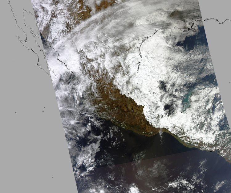 Nubosidad en el terreno:75% Nubosidad sobre México:70% Datos nulos en la escena:29% Datos nulos sobre México:7% |