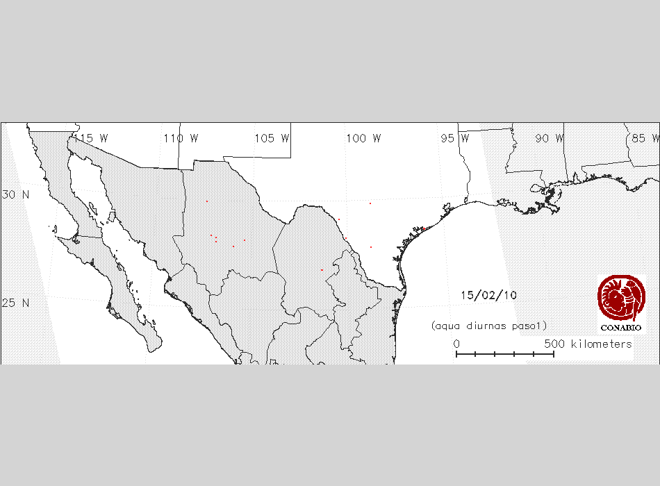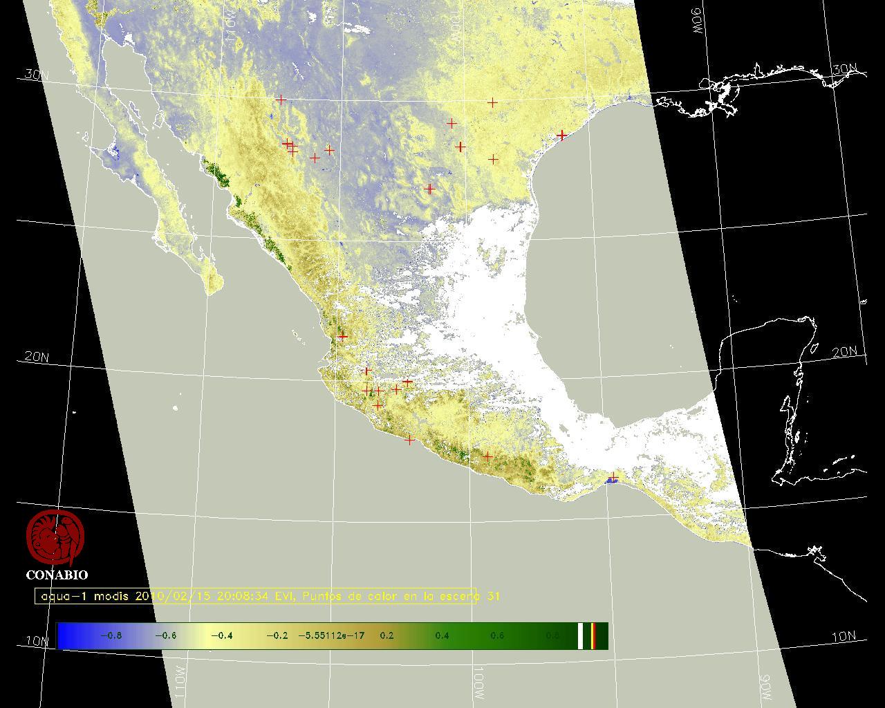 Se considera como punto de calor al elemento espacial mínimo de la imagen (pixel) que reporta una temperatura elevada. Para las imágenes diurnas la temperatura mínima considera es de 42 C y para las imágenes nocturnas es de 25 C. |