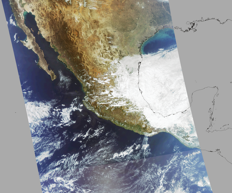 Nubosidad en el terreno:18% Nubosidad sobre México:25% Datos nulos en la escena:28% Datos nulos sobre México:6% |