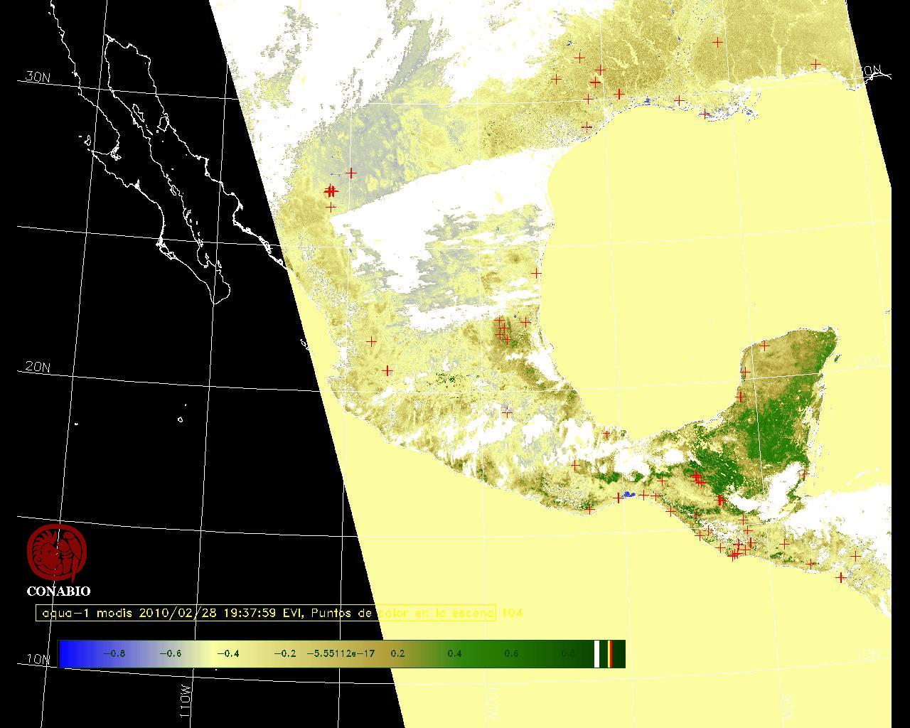 Se considera como punto de calor al elemento espacial mínimo de la imagen (pixel) que reporta una temperatura elevada. Para las imágenes diurnas la temperatura mínima considera es de 42 C y para las imágenes nocturnas es de 25 C. |