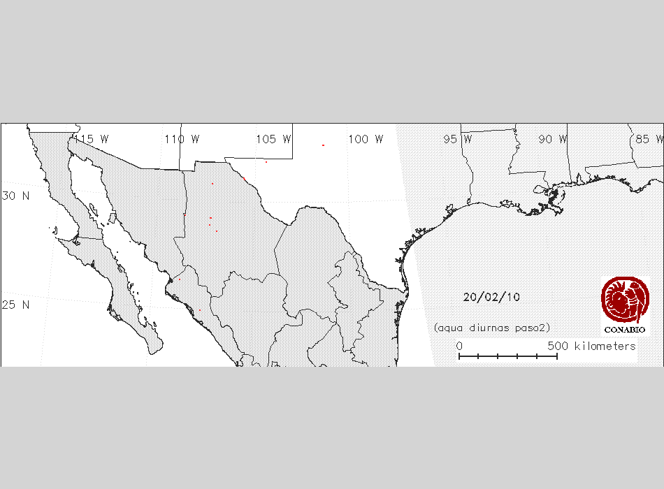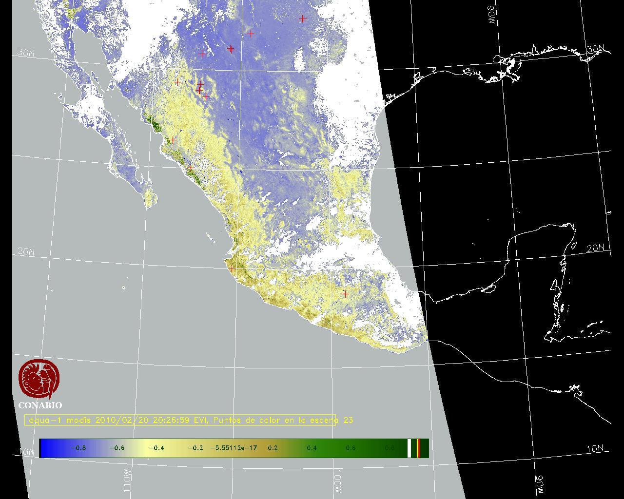 Se considera como punto de calor al elemento espacial mínimo de la imagen (pixel) que reporta una temperatura elevada. Para las imágenes diurnas la temperatura mínima considera es de 42 C y para las imágenes nocturnas es de 25 C. |