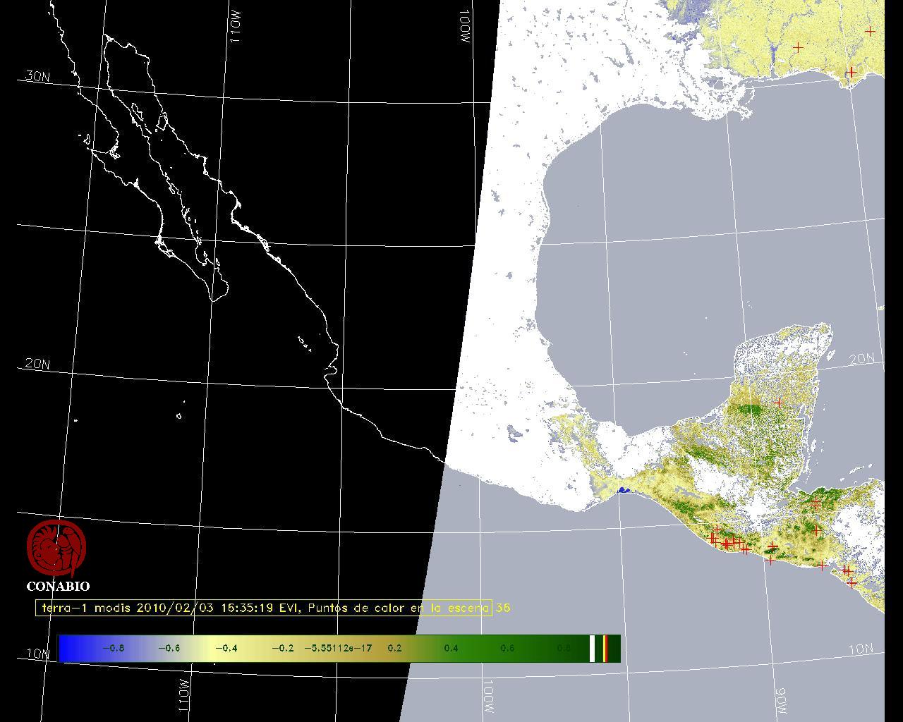Se considera como punto de calor al elemento espacial mínimo de la imagen (pixel) que reporta una temperatura elevada. Para las imágenes diurnas la temperatura mínima considera es de 42 C y para las imágenes nocturnas es de 25 C. |