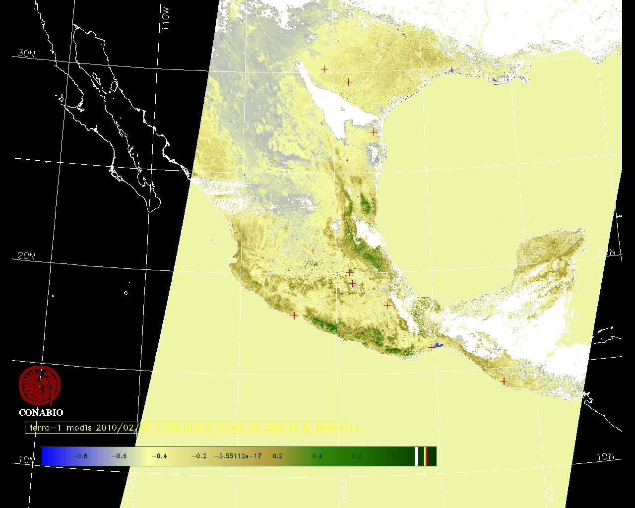 Se considera como punto de calor al elemento espacial mínimo de la imagen (pixel) que reporta una temperatura elevada. Para las imágenes diurnas la temperatura mínima considera es de 42 C y para las imágenes nocturnas es de 25 C. |