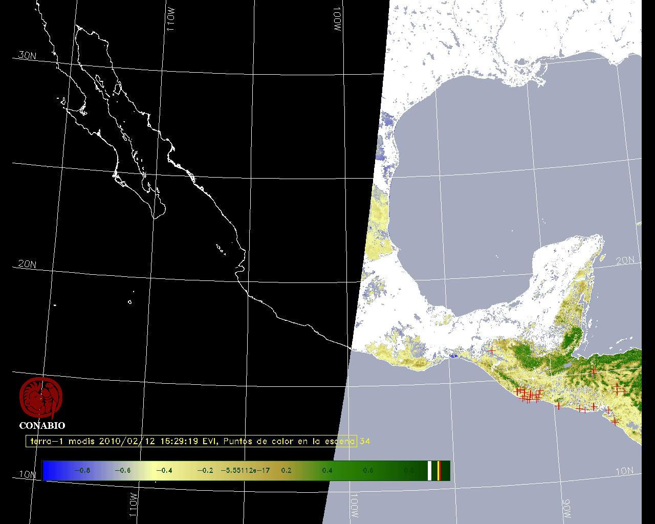Se considera como punto de calor al elemento espacial mínimo de la imagen (pixel) que reporta una temperatura elevada. Para las imágenes diurnas la temperatura mínima considera es de 42 C y para las imágenes nocturnas es de 25 C. |