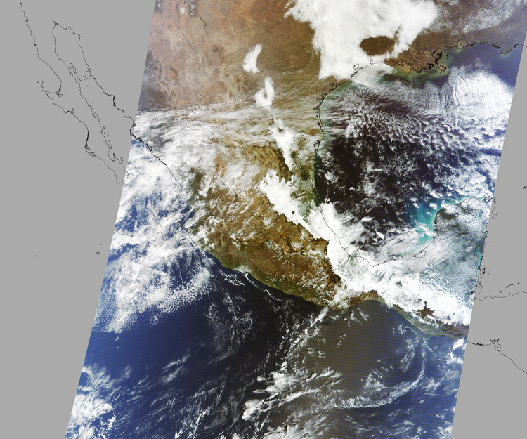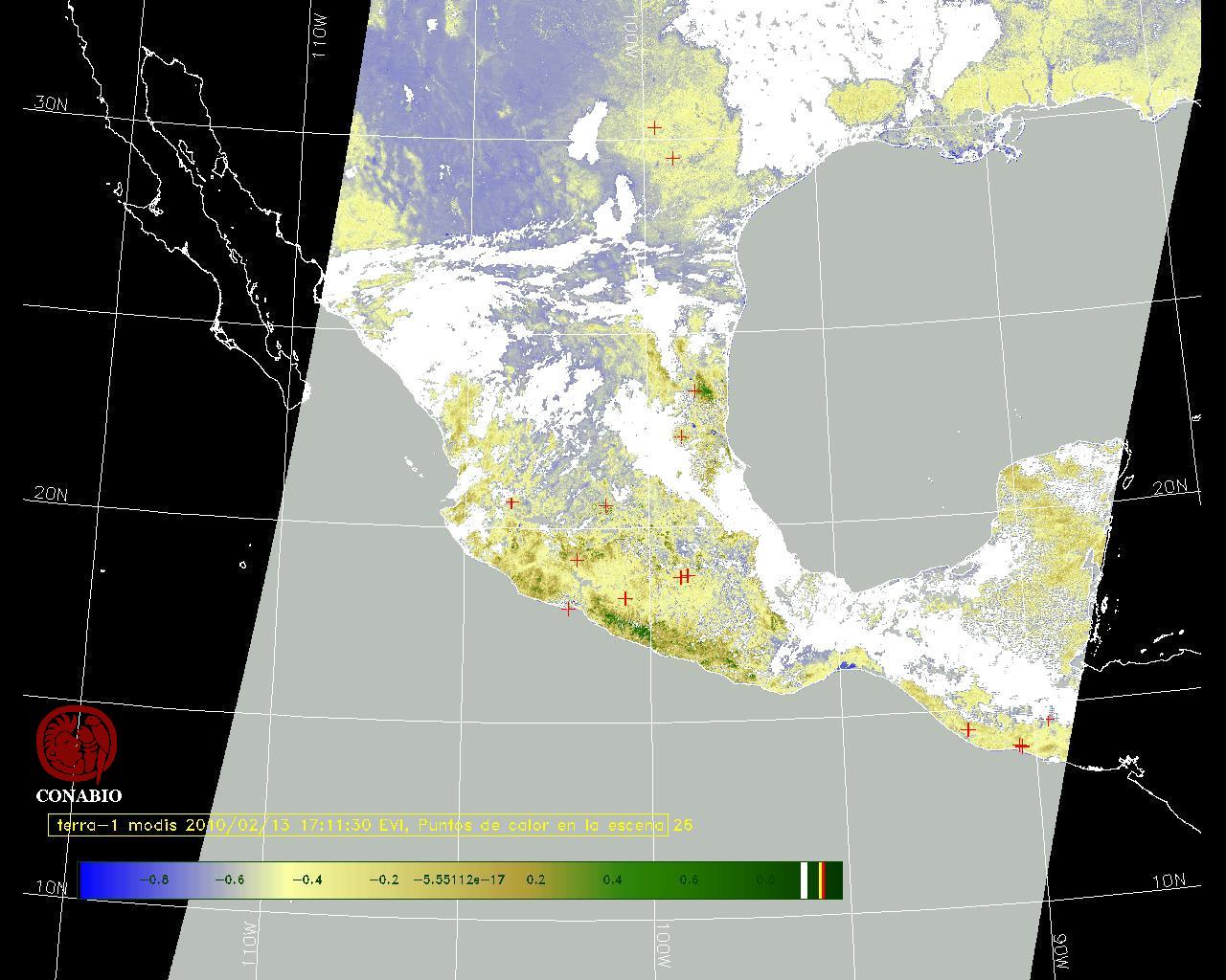 Nubosidad en el terreno:32% Nubosidad sobre México:35% Datos nulos en la escena:28% Datos nulos sobre México:16% |