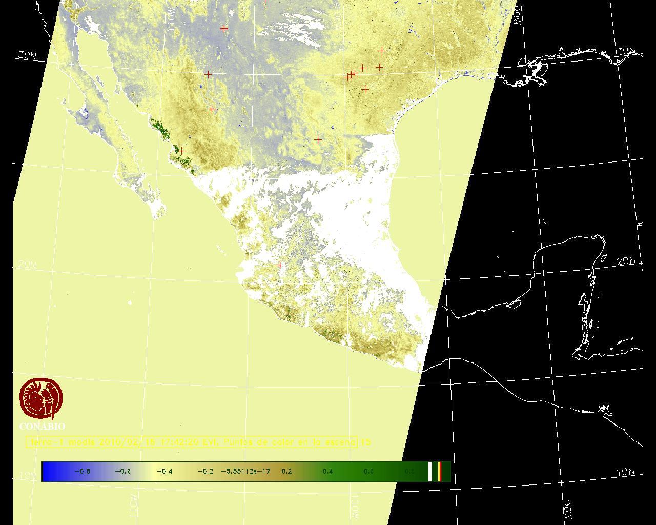 Se considera como punto de calor al elemento espacial mínimo de la imagen (pixel) que reporta una temperatura elevada. Para las imágenes diurnas la temperatura mínima considera es de 42 C y para las imágenes nocturnas es de 25 C. |