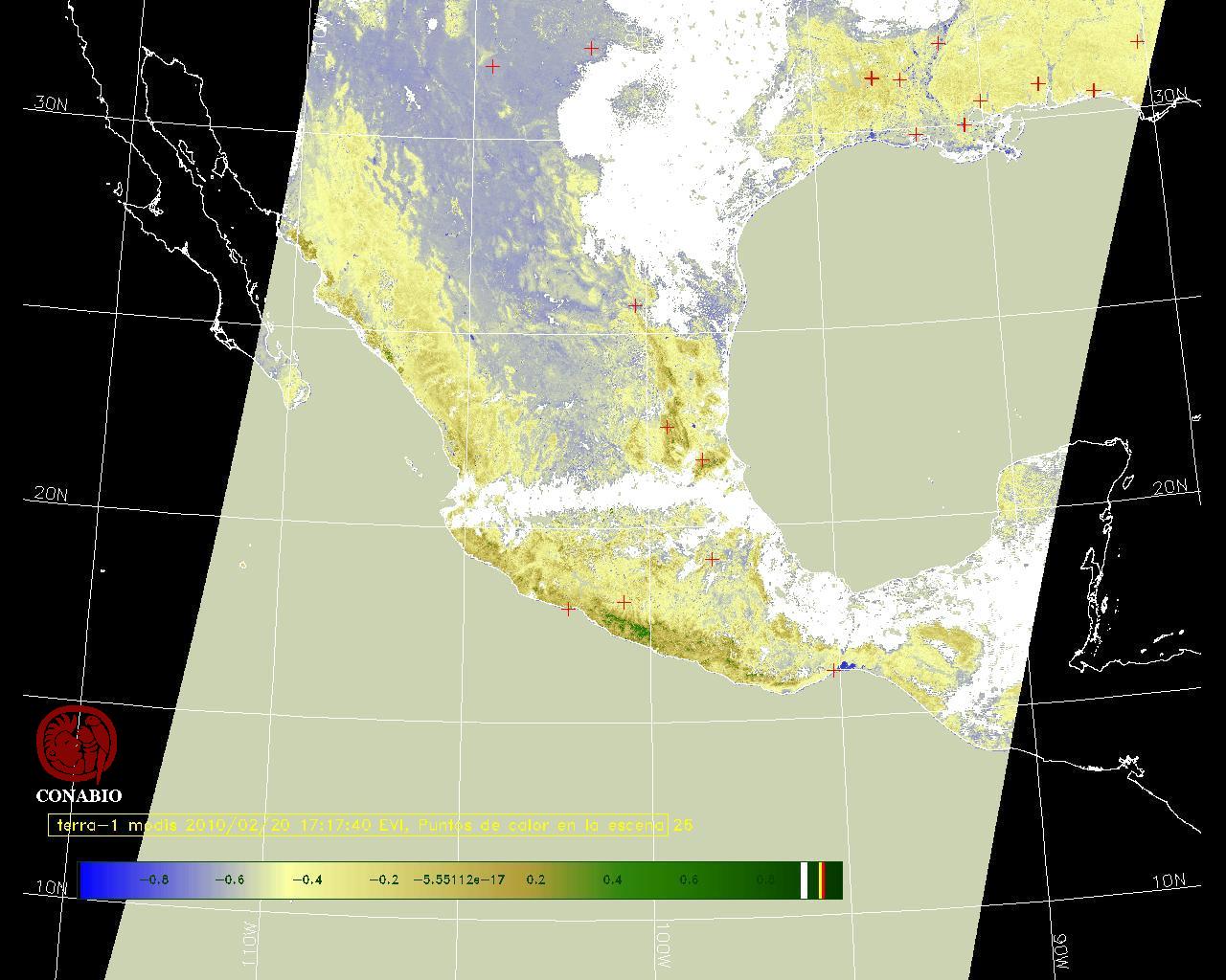 Nubosidad en el terreno:25% Nubosidad sobre México:19% Datos nulos en la escena:28% Datos nulos sobre México:14% |