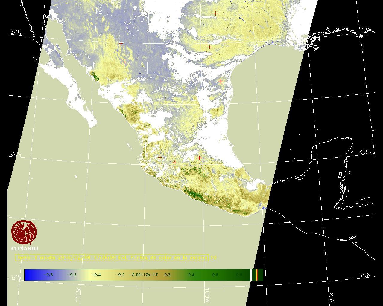 Los valores del índice van de -1 a 1, entre más cercano al valor 1 la vegetación presenta mayor vigor. Los índices de vegetación son utilizados para conocer el comportamiento de la vegetación tanto espacial como temporal. |