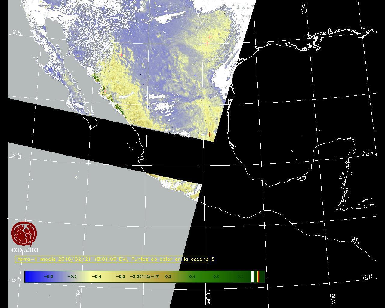 Se considera como punto de calor al elemento espacial mínimo de la imagen (pixel) que reporta una temperatura elevada. Para las imágenes diurnas la temperatura mínima considera es de 42 C y para las imágenes nocturnas es de 25 C. |