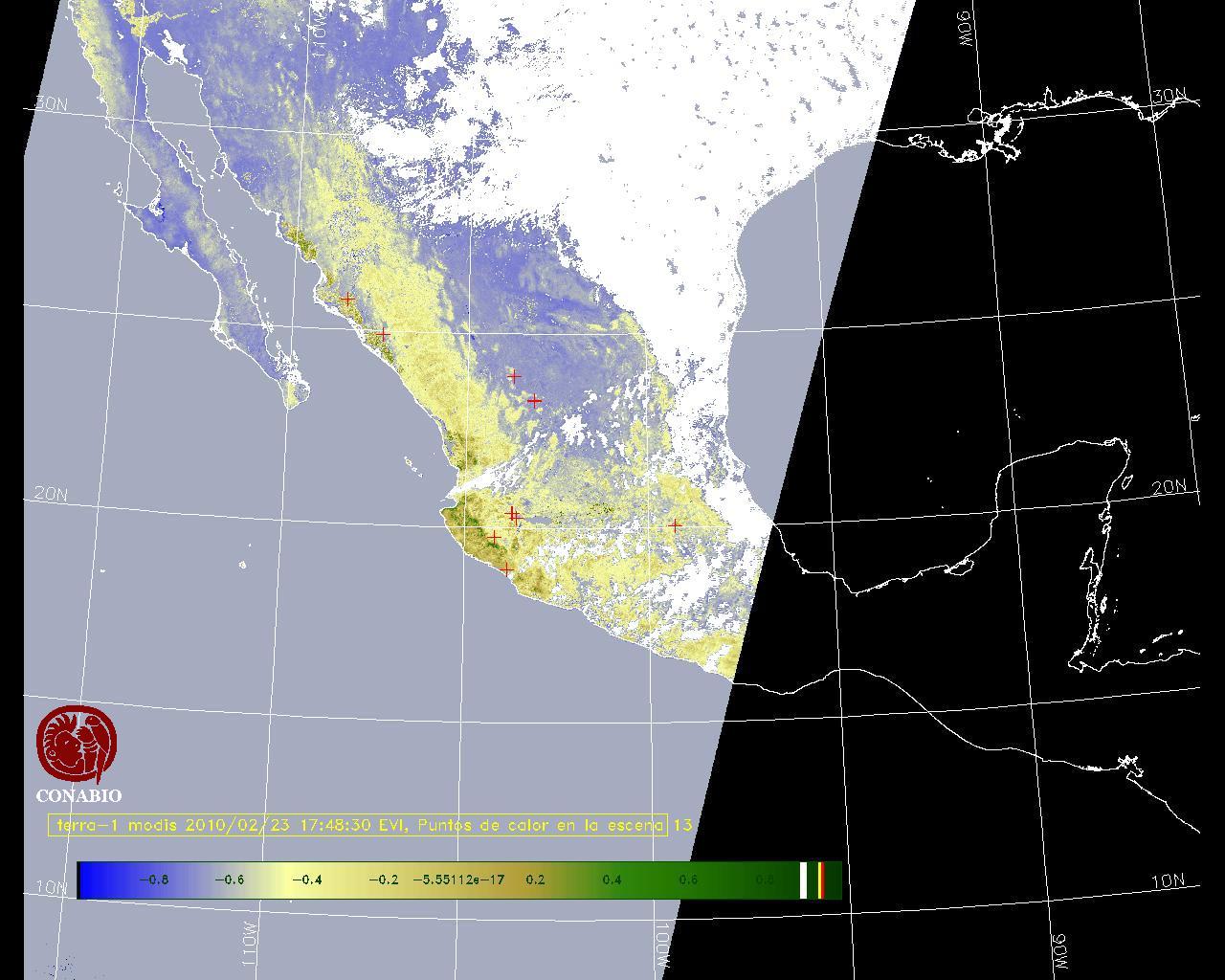 Nubosidad en el terreno:43% Nubosidad sobre México:25% Datos nulos en la escena:35% Datos nulos sobre México:18% |