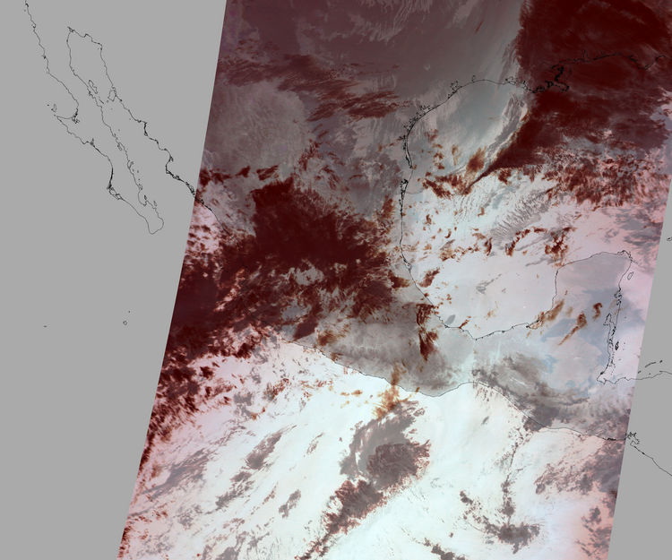 Nubosidad en el terreno:31% Nubosidad sobre México:30% Datos nulos en la escena:29% Datos nulos sobre México:21% |