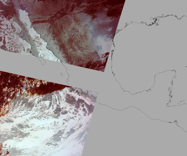 Nubosidad sobre el terreno:13% Nubosidad sobre México:5% Datos nulos en la escena:45% Datos nulos sobre México:29% |