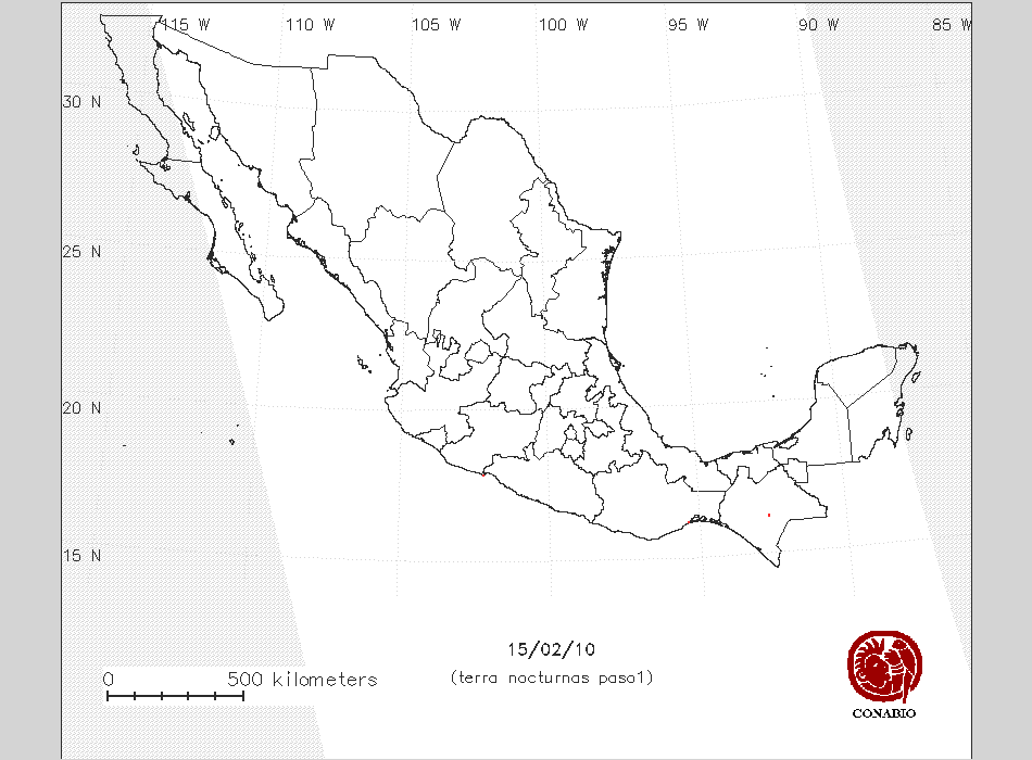Se considera como punto de calor al elemento espacial mínimo de la imagen (pixel) que reporta una temperatura elevada. Para las imágenes diurnas la temperatura mínima considera es de 42 C y para las imágenes nocturnas es de 25 C. |