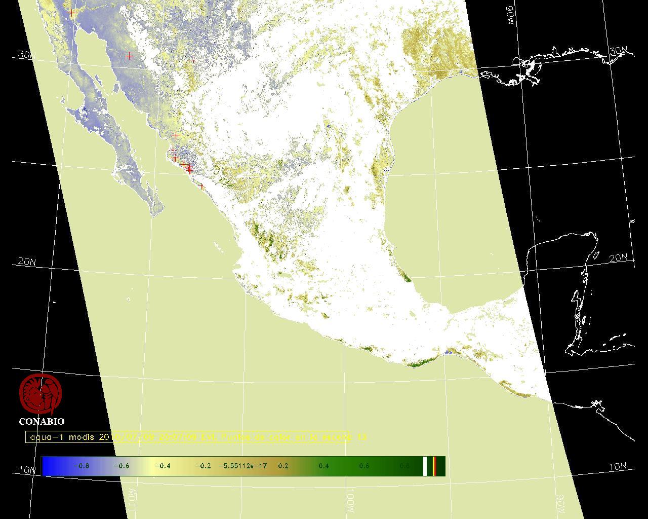 Los valores del índice van de -1 a 1, entre más cercano al valor 1 la vegetación presenta mayor vigor. Los índices de vegetación son utilizados para conocer el comportamiento de la vegetación tanto espacial como temporal. |