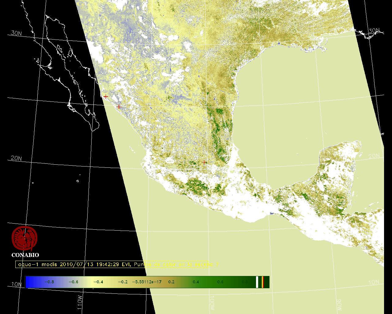 Los valores del índice van de -1 a 1, entre más cercano al valor 1 la vegetación presenta mayor vigor. Los índices de vegetación son utilizados para conocer el comportamiento de la vegetación tanto espacial como temporal. |