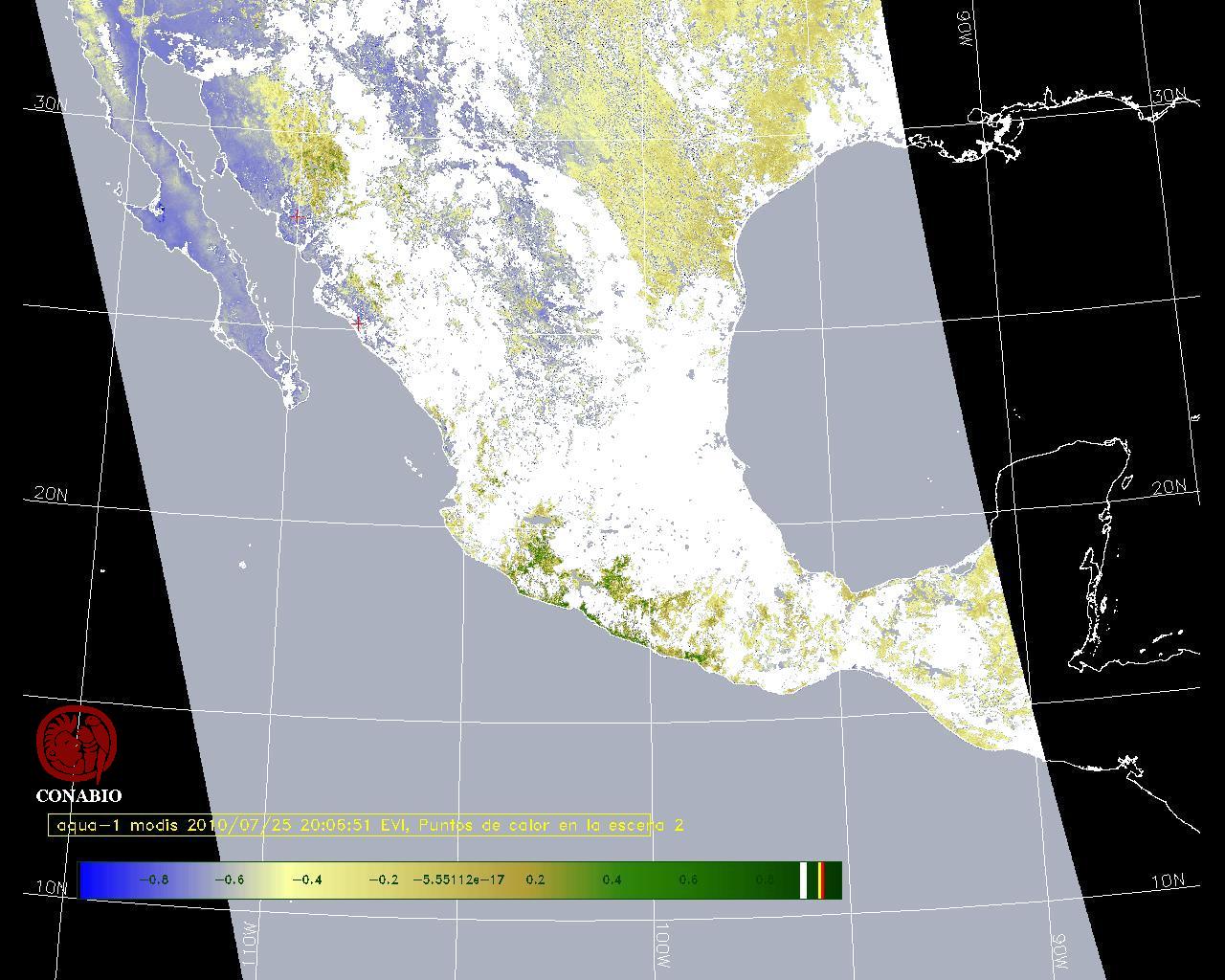 Se considera como punto de calor al elemento espacial mínimo de la imagen (pixel) que reporta una temperatura elevada. Para las imágenes diurnas la temperatura mínima considera es de 42 C y para las imágenes nocturnas es de 25 C. |