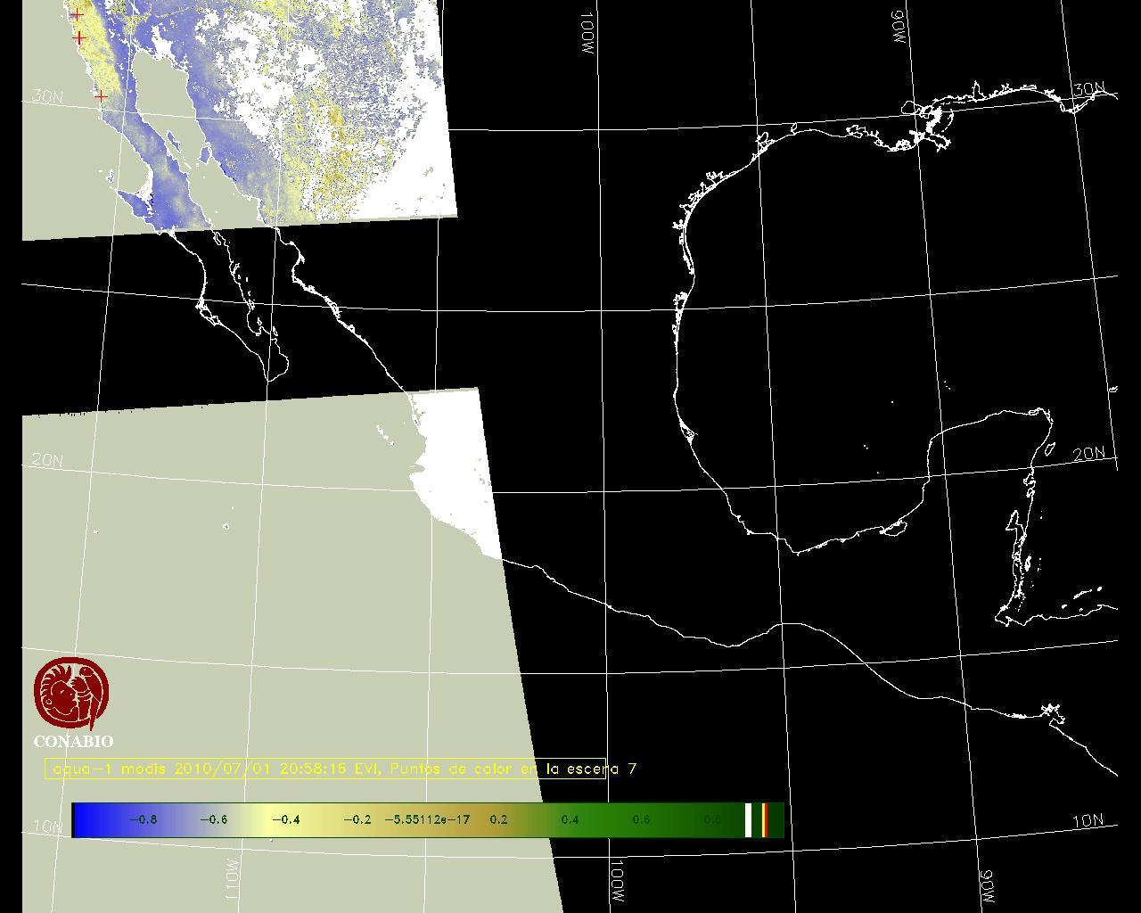 Se considera como punto de calor al elemento espacial mínimo de la imagen (pixel) que reporta una temperatura elevada. Para las imágenes diurnas la temperatura mínima considera es de 42 C y para las imágenes nocturnas es de 25 C. |